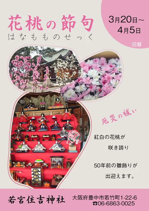 邪気を祓う花桃の霊力を身近に感じ、七段飾りのお雛様から無病息災を授かるよう、どうぞお祈り・お参りください。